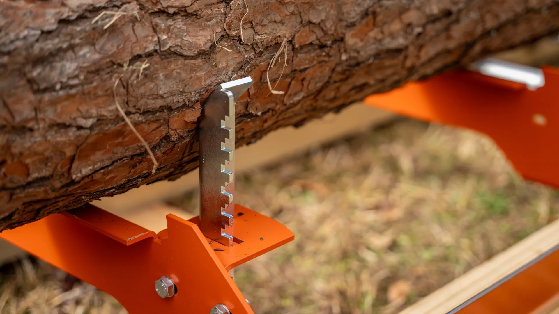 Two strong steel quick-lock drop-in side supports use a convenient and secure notching system for fast adjustment between cuts and when turning logs. An additional built-in side support on each cross section eliminates the need for quick-lock side supports while sawing a squared cant and allows for final cuts as low as 1” of the bed.